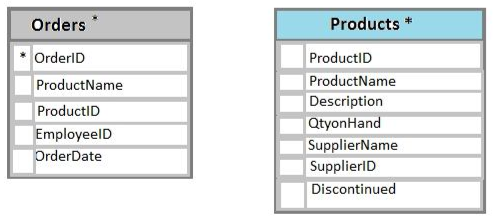 The table must reference the ProductID column in the Product table