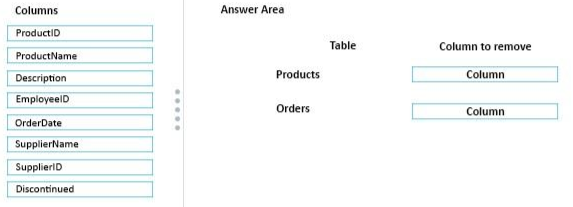 B: We should use WITH NOCHECK asexisting records in the ProductReview table must not be validated with the Product table.C: Deletes should not be allowed, so we use ON DELETE NO ACTION.Updates should be allowed, so we use ON DELETE NO CASCADE NO ACTION: the Database Engine raises an error,and the update action on the row in the parent table is rolled back.CASCADE: corresponding rows are updated in the referencing table when that row is updated in the parent table.Note: ON DELETE { NO ACTION | CASCADE | SET NULL | SET DEFAULT }Specifieswhat action happens to rows in the table that is altered, if those rows have a referential relationship and the referenced row is deleted from the parent table. The default is NO ACTION. ON UPDATE { NO ACTION | CASCADE | SET NULL | SET DEFAULT } Specifieswhat action happens to rows in the table altered when those rows have a referential relationship and the referenced row is updated in the parent table. The default is NO ACTION. Note: You must modify the ProductReview Table to meet the following requirements:The table must reference the ProductID column in the Product table Existing records in the ProductReview table must not be validated with the Product table. Deleting records in the Product table must not be allowed if records are referencedby the ProductReview table. Changes to records in the Product table must propagate to the ProductReview table. References:https://msdn.microsoft.com/en-us/library/ms190273.aspxhttps://msdn.microsoft.com/en-us/library/ms188066.aspx
