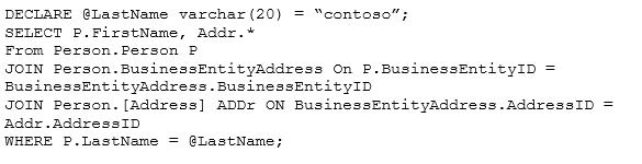 Users frequently run the same query with different values for the local variable @lastName. The table named Person is persisted on disk.
