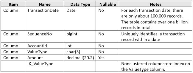You have a table names tblTransaction that is persisted on disk and contains the information described in the following table: