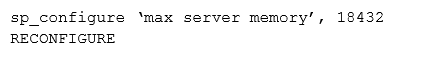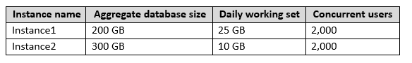 You use Microsoft Azure Resource Manager to deploy two new Microsoft SQL Server instances in an Azure virtual machine (VM). VM has 28 gigabytes (GB) of memory. The instances are named Instance1 and Instance2, respectively.