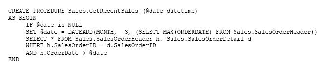 You have a data warehouse that stores information about products, sales, and orders for a manufacturing company. The instance contains a database that has two tables named SalesOrderHeader and SalesOrderDetail. SalesOrderHeader has 500,000 rows and SalesOrderDetail has 3,000,000 rows.