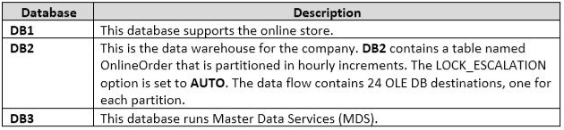 Product prices are updated and are stored in a table named Products on DB1. The Products table is deleted and refreshed each night from MDS by using a Microsoft SQL Server Integration Services (SSIS) package. None of the data sources are sorted.
