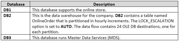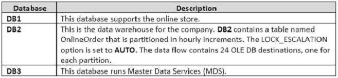 You plan to load at least one million rows of data each night from DB1 into the OnlineOrder table. You must load data into the correct partitions using a parallel process.