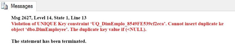 In the Microsoft world of SQL Server however, a single NULL is allowed but multiple NULLs are not.