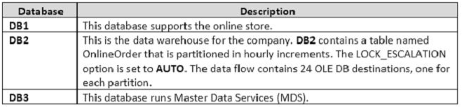 You plan to load at least one million rows of data each night from DB1 into the OnlineOrder table. You must load data into the correct partitions using a parallel process.