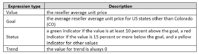 You must create a KPI named Large Sales Target that uses the Traffic Light indicator to display status. The KPI must contain: