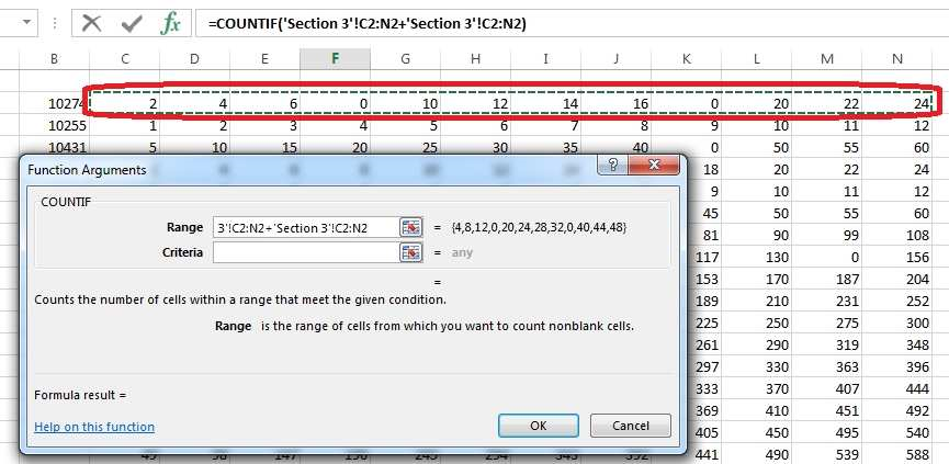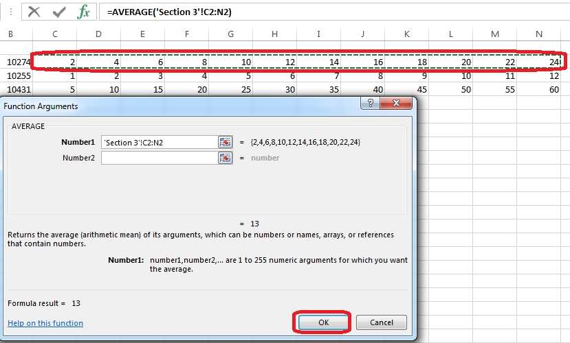 Step 4: Locate the data for the first student. This well be cell range C2 to N2. Click C2 and then Shift-click cell N2. Then click the OK button.