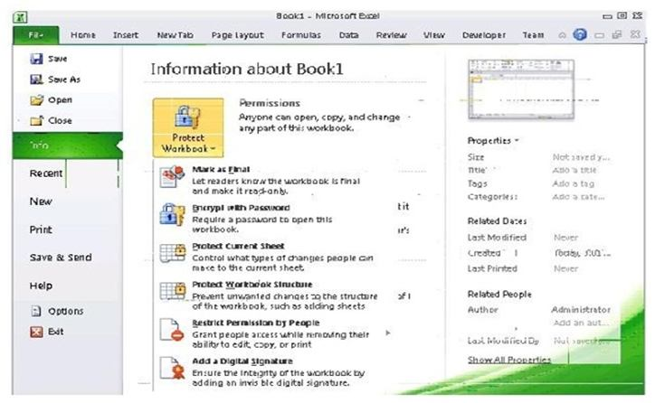 1. Mark as Final: This option is used to make the document read-only. When a spreadsheet is marked as final, various options such as typing, editing commands, and proofing marks are disabled or turned off and the spreadsheet becomes read-only. This command helps a user to communicate that he is sharing a completed version of a spreadsheet. This command also prevents reviewers or readers from making inadvertent modifications to the spreadsheet.