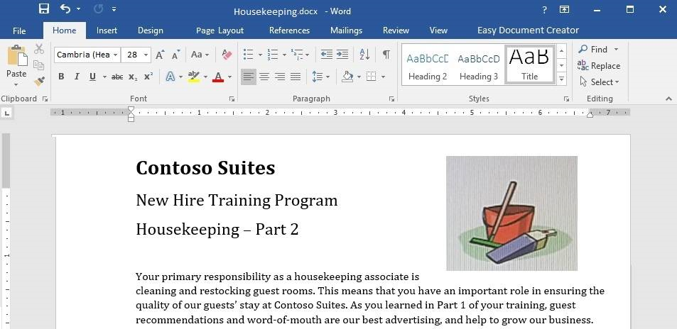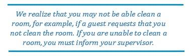 If you have more than 30 minutes left after you have completed your assigned rooms, contact your supervisor for additional assignments.