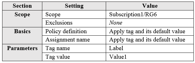 You assign a policy to RG6 as shown in the following table: