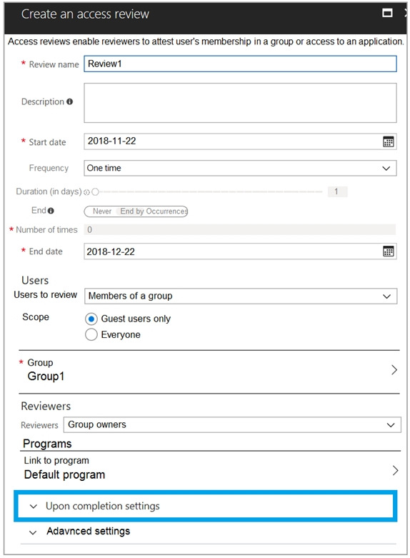 You configure an access review named Review1 as shown in the following exhibit: