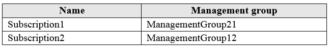You add Azure subscriptions to the management groups as shown in the following table: