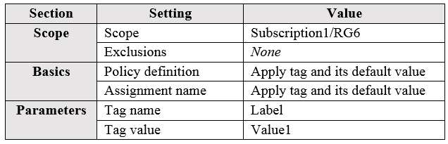 You assign a policy to RG6 as shown in the following table: