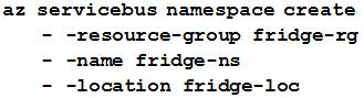 # Create a Service Bus messaging namespace with a unique name. Example:namespaceName=myNameSpace$RANDOM az servicebus namespace create --resource-group $resourceGroupName --name $namespaceName --location eastus References:https://docs.microsoft.com/en-us/azure/service-bus-messaging/service-bus-quickstart-cli