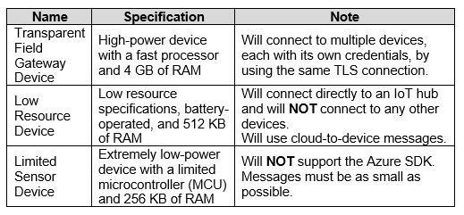 You plan to attach three types of IoT devices as shown in the following table.