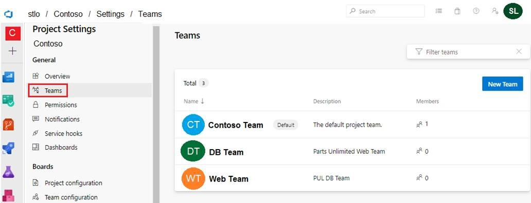 You have a project in Azure DevOps that has three teams as shown in the Teams exhibit. (Click the Teams tab.)