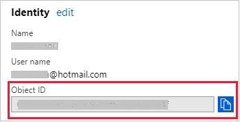 7. In the Identity section, copy the Object ID.