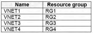 Box 1: VNET4 and VNET1 only RG1 has only Delete lock, while there are no locks on RG4. RG2 and RG3 both have Read-only locks. Box 2: VNET4 onlyThere are no locks on RG4, while the other resource groups have either Delete or Read-only locks. Note: As an administrator, you may need to lock a subscription, resource group, or resource to prevent other users in your organization from accidentally deleting or modifying critical resources. You can set the lock level to CanNotDelete or ReadOnly. In the portal, the locks are called Delete and Read-only respectively. CanNotDelete means authorized users can still read and modify a resource, but they can't delete the resource. ReadOnly means authorized users can read a resource, but they can't delete or update the resource. Applying this lock is similar to restricting all authorized users to the permissions granted by the Reader role. Scenario:User2 is a Security administrator. Sub1 contains six resource groups named RG1, RG2, RG3, RG4, RG5, and RG6. User2 creates the virtual networks shown in the following table. Sub1 contains the locks shown in the following table. References:https://docs.microsoft.com/en-us/azure/azure-resource-manager/resource-group-lock-resources