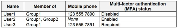 You have an Azure Active Directory (Azure AD) tenant named contoso.com that contains the users shown in the following table.