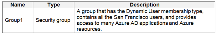 Litware identifies the following identity and access requirements: All San Francisco users and their devices must be members of Group1.