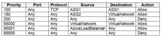 Box 1: No. VM4 is in Subnet13 which has NSG3 attached to it.VM1 is in ASG1. NSG3 would only allow ICMP pings from ASG2 but not ASG1. Only TCP traffic is allowed from ASG1.NSG3 has the inbound security rules shown in the following table.   Box 2: Yes.VM2 is in ASG2. Any protocol is allowed from ASG2 so ICMP ping would be allowed.Box3. VM1 is in ASG1. TCP traffic is allowed from ASG1 so VM1 could connect to the web server as connections to the web server would be on ports TCP 80 or TCP 443.