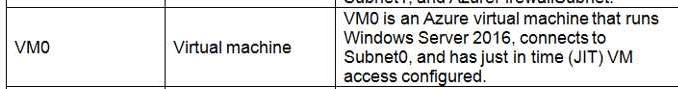 Following the implementation of the planned changes, the IT team must be able to connect to VM0 by using JIT VM access.