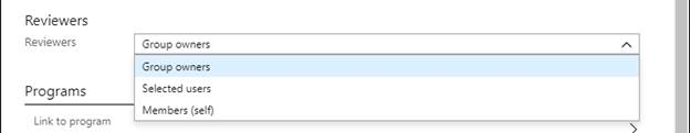 In the Reviewers section, select either one or more people to review all the users in scope. Or you can select to have the members review their own access. If the resource is a group, you can ask the group owners to review.