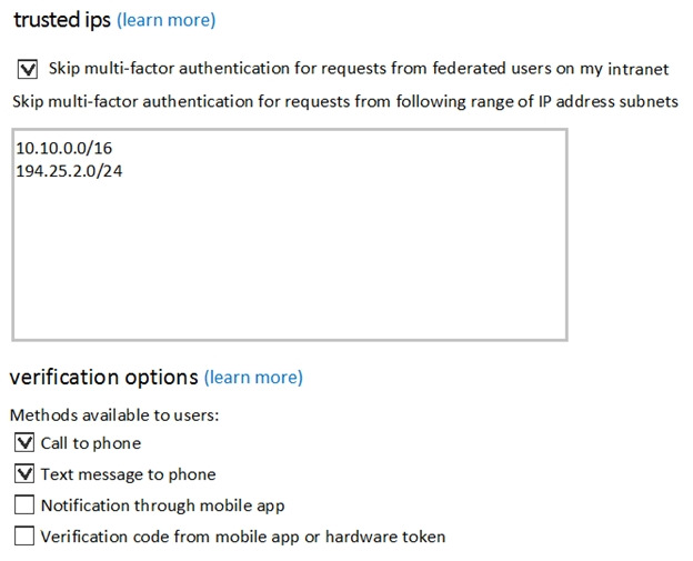 The MFA service settings are configured as shown in the exhibit. (Click the Exhibit tab.)