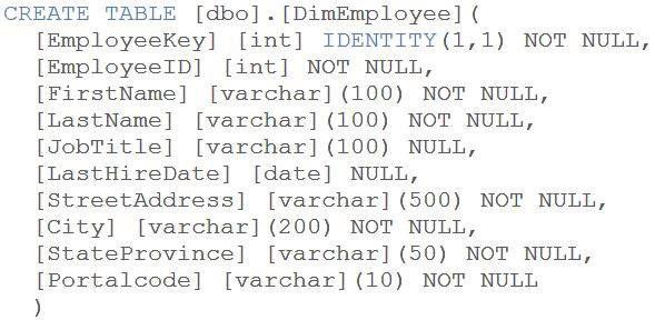 You create a table by using the Transact-SQL statement shown in the following exhibit.