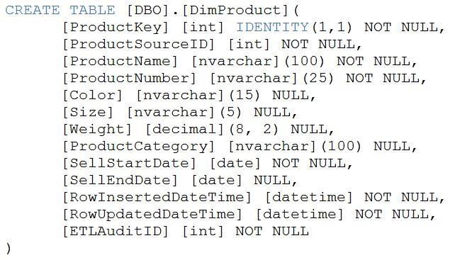 You create a table by using the Transact-SQL statement shown in the following exhibit.