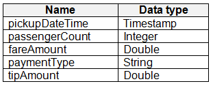 You have a Fabric tenant that contains a lakehouse named Lakehouse1. Lakehouse1 contains a table named Nyctaxi_raw. Nyctaxi_row contains the following table: