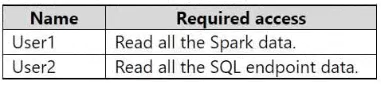 You need to configure OneLake security for users shown in the following table.