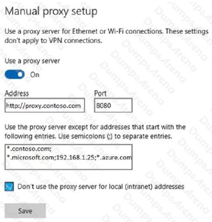 You configure the proxy settings on Computer1 as shown in the following exhibit.
