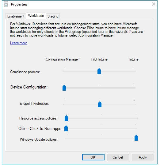 You configure co-management workloads as shown in the following exhibit.