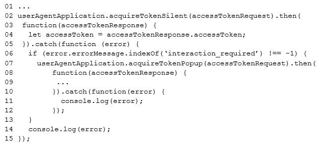 You plan to implement SSO with Microsoft Authentication Library (MSAL) by using the following code: