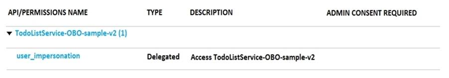 The permissions for the TodoListService API are configured as shown in the TodoListService exhibit. (Click the TodoListService tab.)
