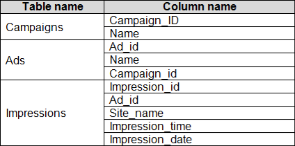 1. Group the impressions by Ad_id, Site_name, and Impression_date. Aggregate by using the CountRowsfunction.