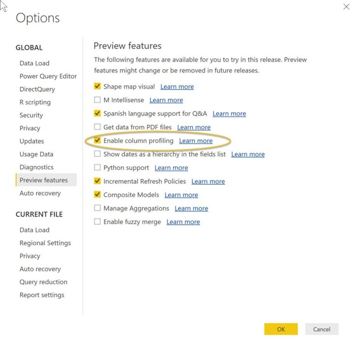 Data Profiling, Quality & Distribution in Power BI / Power Query features