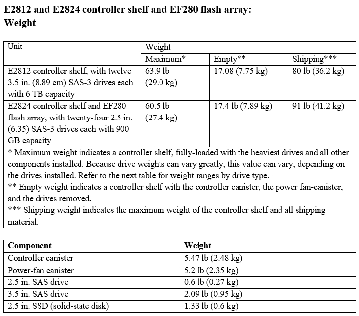 Weight of an E2824 shelf (maximum): 60.5 lb.