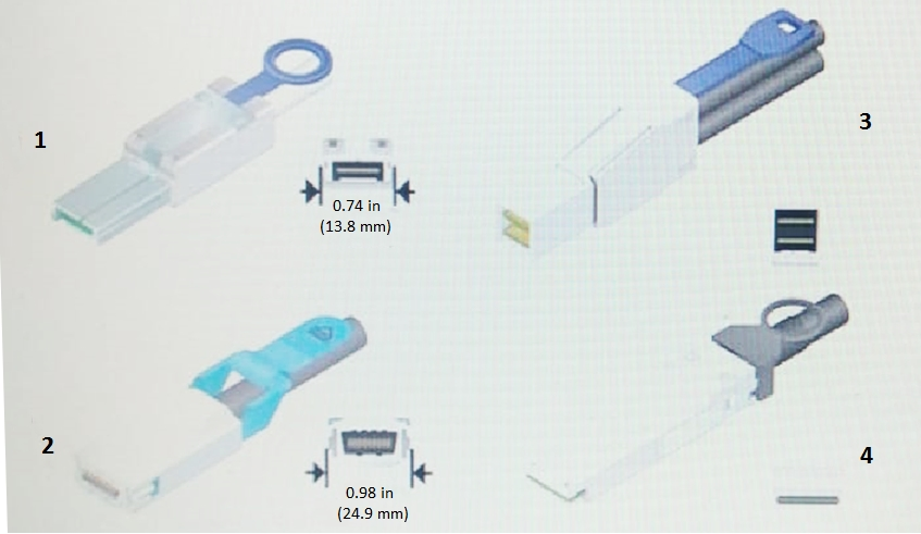 Identify SAS Connector Types: The exhibit shows different types of SAS connectors labeled 1 through 4.