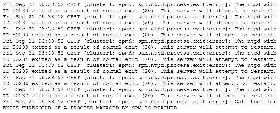 3. The spmd application failed to restart the ntpd daemon.