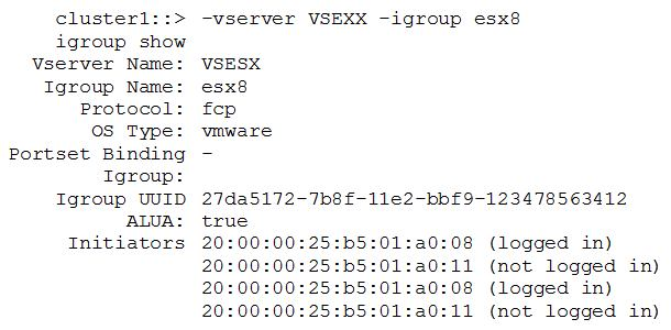 4. Review the igroup configuration on the cluster.