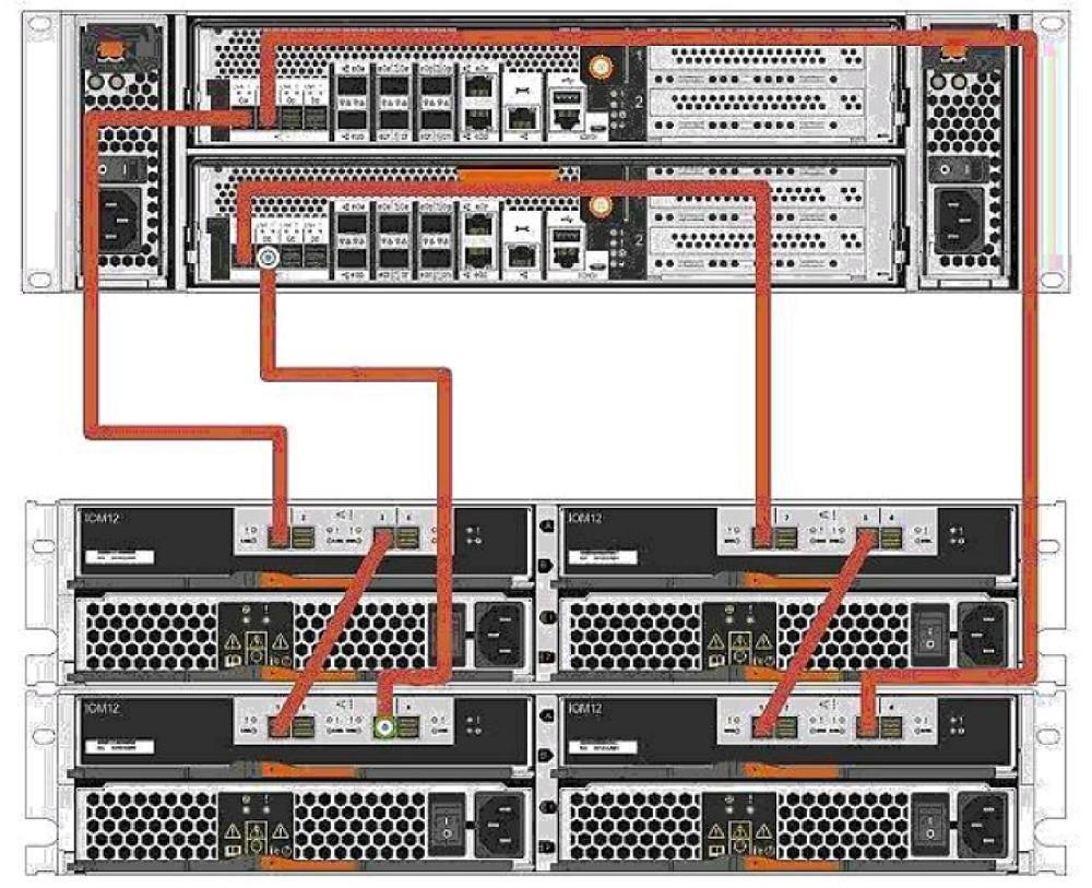 3. Move the 0b SAS connection on the top controller to 0d on the bottom controller.