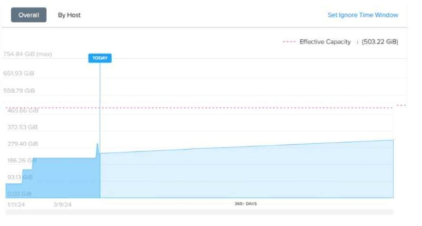 An administrator is looking at the memory cluster runway diagram as shown in exhibit, in Prism Central. The environment has three hosts with the following configuration: