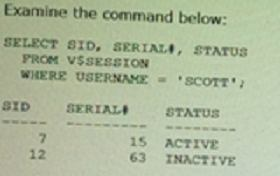 B (not A, Not C): * You terminate a current session using the SQL statement ALTER SYSTEM KILL SESSION. The following statement terminates the session whose system identifier is 7 and serial number is 15:* Terminating an Active Session If a user session is processing a transaction (ACTIVE status) when you terminate the session, the transaction is rolled back and the user immediately receives the following message:ORA-00028: your session has been killedALTER SYSTEM KILL SESSION '7,15'; E (not F): Terminating an Inactive SessionIf the session is not making a SQL call to Oracle Database (is INACTIVE) when it is terminated, the ORA-00028 message is not returned immediately. The message is not returned until the user subsequently attempts to use the terminated session. When an inactive session has been terminated, the STATUS of the session in the V$SESSION view is KILLED. The row for the terminated session is removed from V$SESSION after the user attempts to use the session again and receives the ORA-00028 message. References: