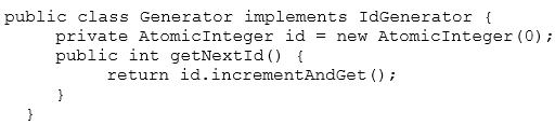 Which class implements IdGenerator in a thread-safe manner, so that no threats can get a duplicate id value during concurrent access?