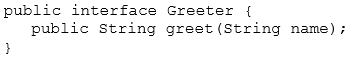 Which is the valid definition for the Greeter interface to enable the code fragment to print Kathy Welcome!?