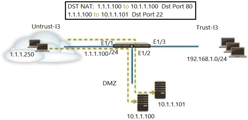 1. Untrust (Any) to DMZ (1.1.1.100), ssh - Allow