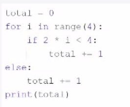 When i = 3, the loop ends and total = 4 is printed